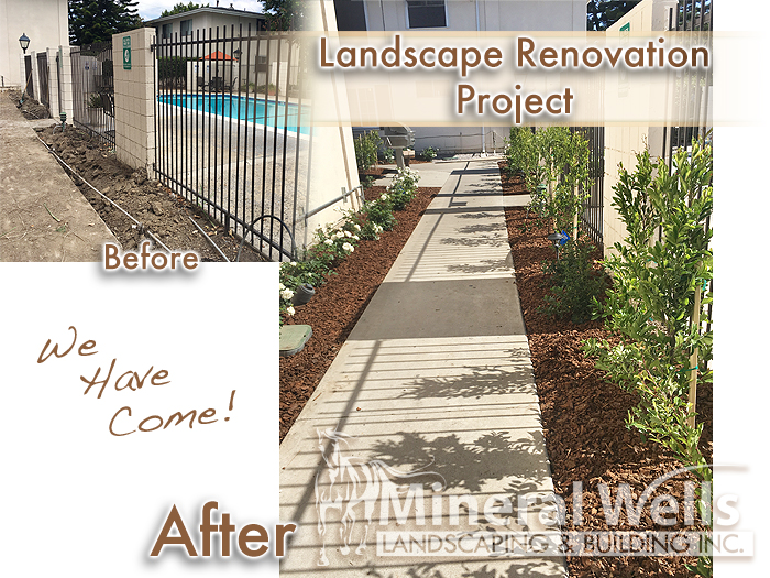 Mineral Wells Landscaping & Building Inc. offers comprehensive commercial, residential landscape consultancy & landscape design, development and execution, landscape maintenance, seasonal color design, installation and arbor care. With our experience team of landscapers, designers and horticulturists, Mineral Wells Landscape & Building Inc., can design and build a distinctive outdoor living environment that will give enjoyment for years to come and increase your property value and beautify as well. Complete Service Committed to satisfaction.